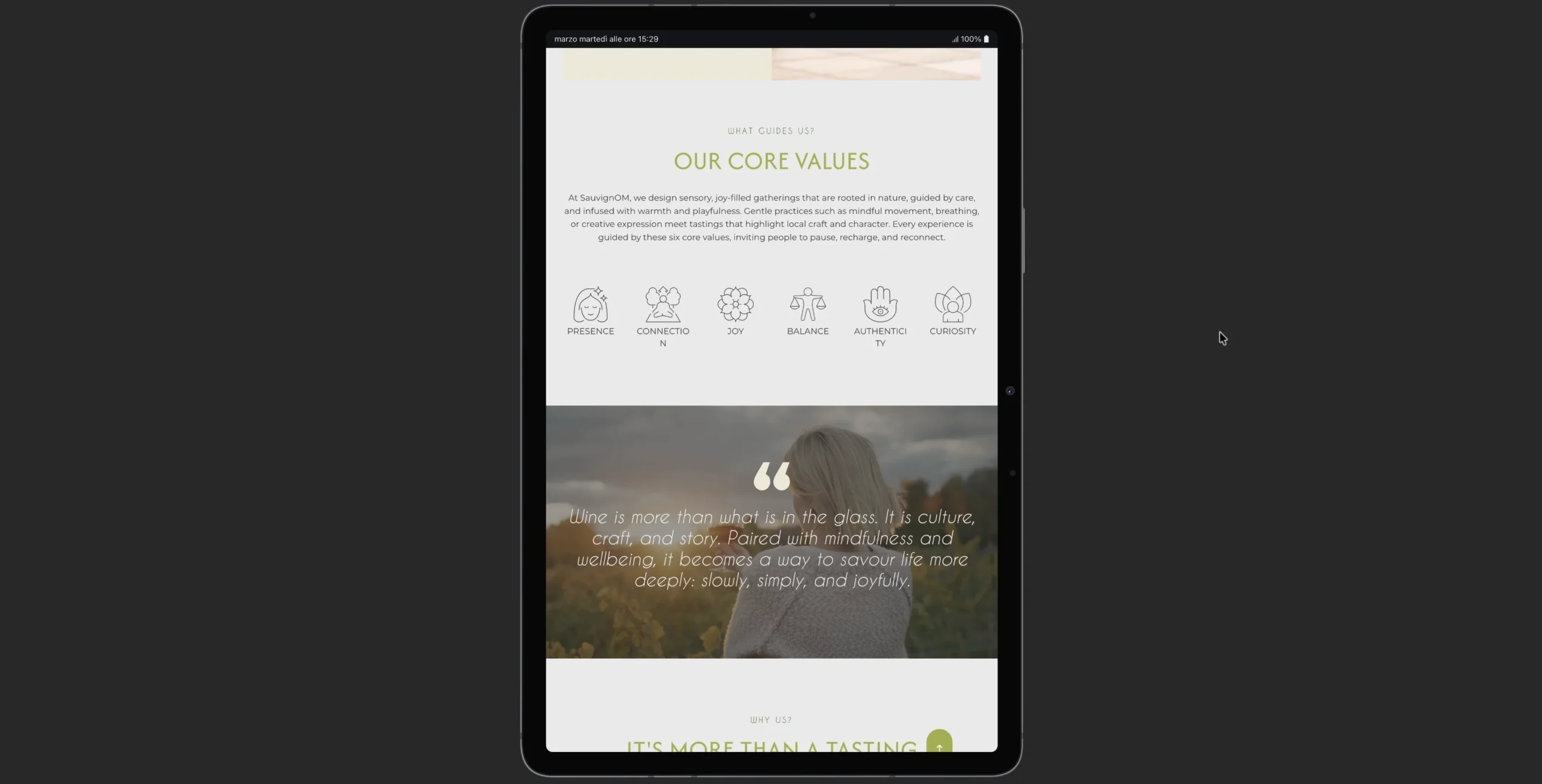il sito esplicita cos’è la Winefulness e cosa rende l’esperienza diversa da una sessione di wellness “classica”, con aggiunta di degustazione vino e location inerenti.